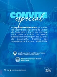 A Assembleia Legislativa do Estado do Pará (Alepa) vai realizar, no próximo dia 23 de fevereiro, uma sessão solene em comemoração aos 20 anos de atuação da Associação Brasileira de Jornalistas de Turismo – seccional Pará (Abrajet/PA).